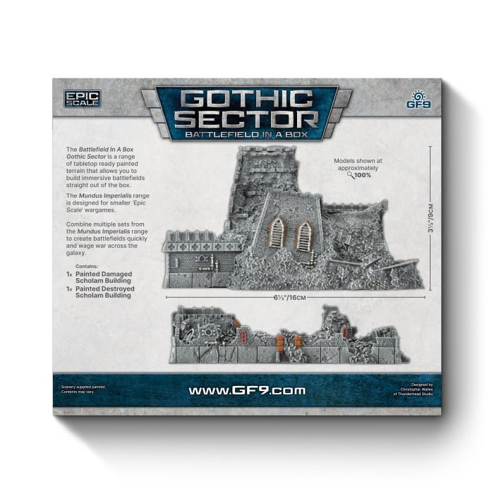- Contains 1x pre-painted Damaged Scholam Building and 1x pre-painted Destroyed Scholam Building
