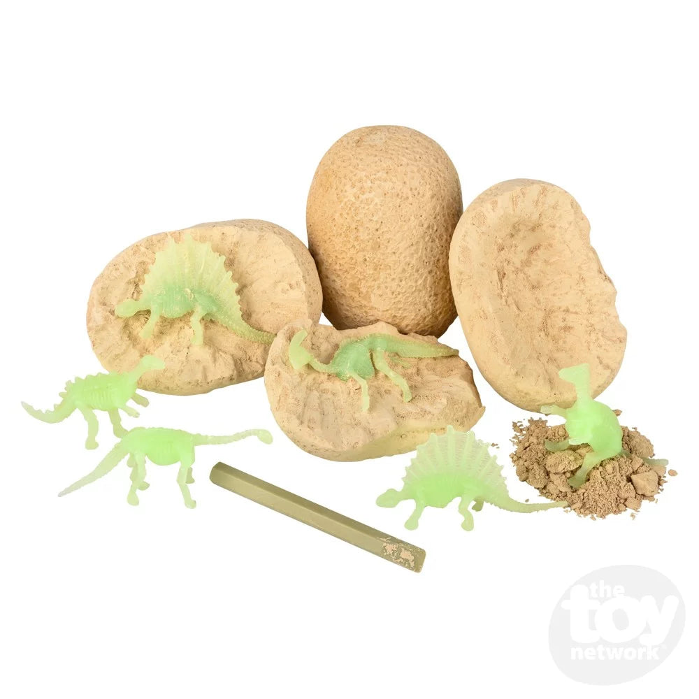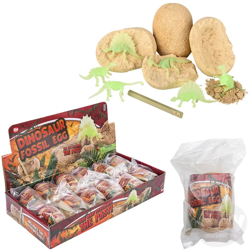 This set includes a hard 3-inch chalk egg that contains a dinosaur figurine and pick to chip the egg and dig out the fossil inside.