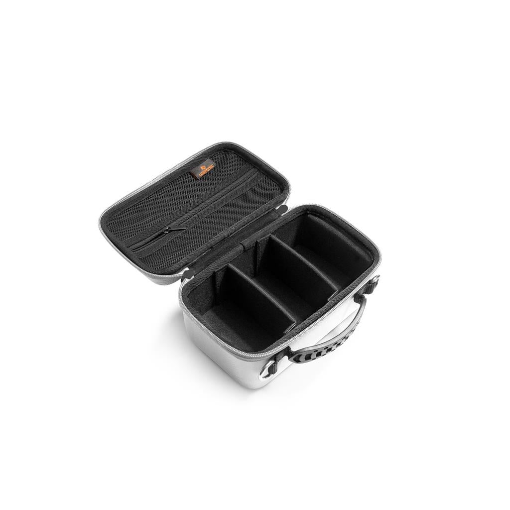 The Game Shell is a portable case, perfectly sized for a wide variety of usages. It fits up to 250 double-sleeved cards, tokens, dice or even complete small games. The outside material comes in durable and resistant nylon with a premium structure. It boasts a reinforced handle and two zippers, hidden and protected by the outer material. On the inside, the Game Shell provides an accessories compartment and two adjustable dividers. This enables a completely free setup, adjustable to your needs and preferences.