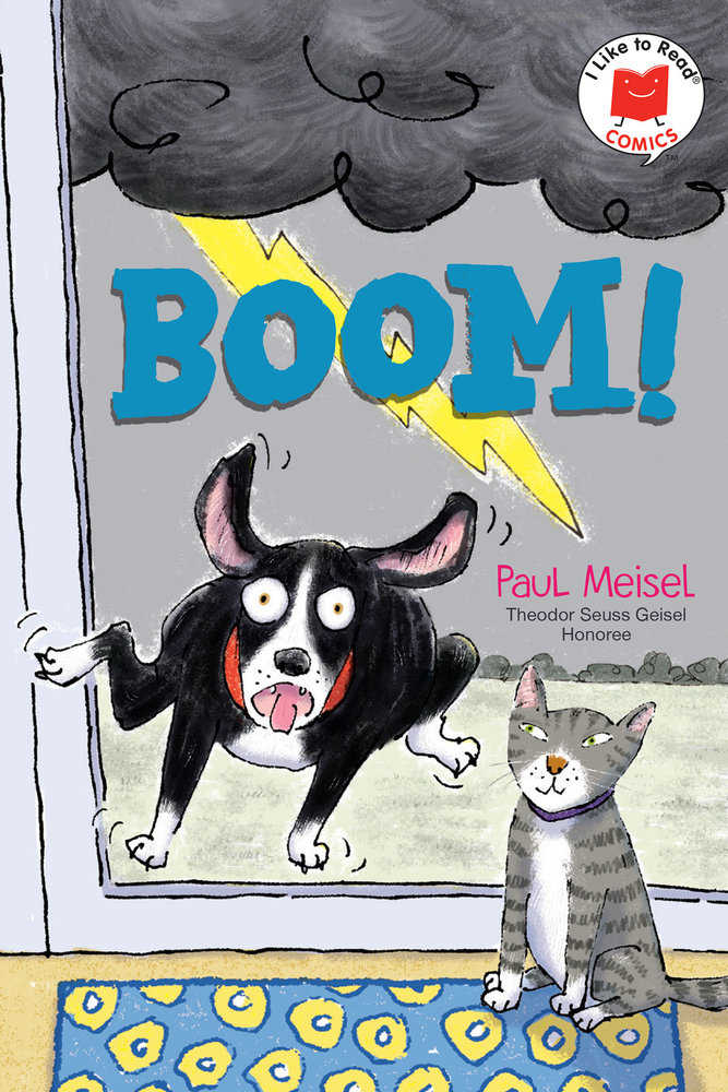 BOOM! A funny story about a panicky dog, a nonchalant cat, and a loud thunderstorm. This early graphic novel from two-time Theodor Seuss Geisel Honoree Paul Meisel is perfect for first graders learning to read on their own.Dog and Cat are sleeping peacefully when–BOOM! A thunderstorm comes. While Cat is happy to spend the noisy night playing with toys, Dog frantically tries find the just the right hiding spot.Easy-to-read text and energetic, cartoon-style artwork make for an accessible story filled with personality and visual humor. The recipient of two Theodor Seuss Geisel Honor Books, Paul Mesiel brings young readers on a silly, nighttime adventure.Comics-lovers can now share the fun with their kids, students, siblings, and younger friends who are learning to read!I Like to Read Comics are perfect for kids who are challenged by or unengaged in reading, kids who love art, and the growing number of young comics fans. Filled with eye-catching art, humor, and terrific stories these comics provide unique reading experiences for growing minds.I Like to Read Comics, like their award-winning I Like to Read counterpart, are created by celebrated artists and support reading comprehension to transform children into lifelong readers.We hope that all new readers will say, “I like to read comics!”A Junior Library Guild Gold Standard Selection