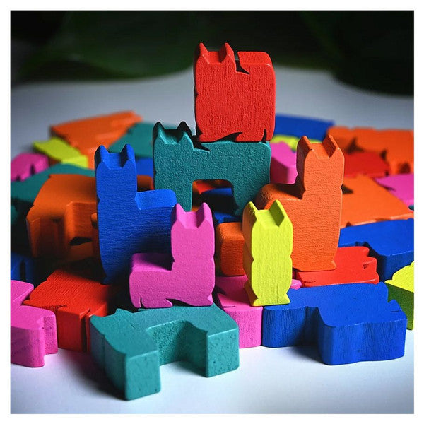 Kittin is an easy to learn, fast-paced and fun dexterity game for all the family. Flip a card, grab your cat meeples, and get building! The quickest player will win the cat-stacking race! Increase the fun with hilarious team rules!