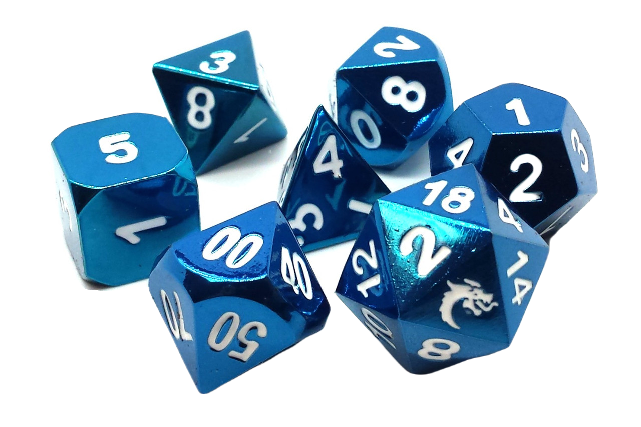 Old School 7 Piece DnD RPG Metal Dice Set: Halfling Forged - Electric Blue