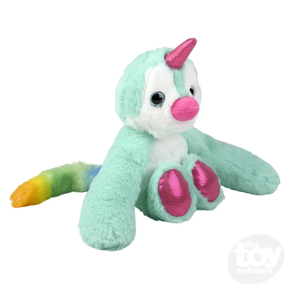 This 10" Fluffytale Penguin features a shiny horn, fluffy turquoise fur, and a unique rainbow tail.