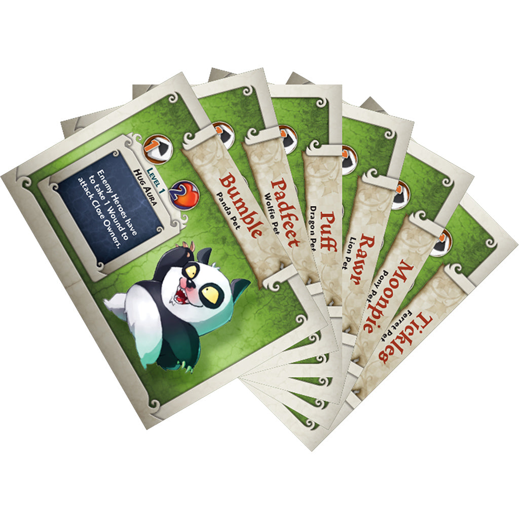 The evil witch, Vexia, has taken up residence in the Magical Gardens of Arcadia and has been sending out her animal minions to lure pets back to her hut. Vexia is well known for her animal experiments, and the Gardens are a perfect place to continue her mad research.Arcadia Quest: Pets is one of the cutest expansions ever designed. Players add Pets to their Guild, each with their own miniature and dashboard. With twelve different animals up for adoption, players can choose from amazing new friends, like Puff the Dragon, Padfeet the Wolfie, and Rawr the Lion.This product is an expansion: Arcadia Quest or Arcadia Quest:Inferno base game required to play.