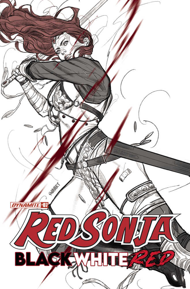 The greatest tales, the best creators, brought to you in beautiful black, white and red! BOB Q (Captain America) creates an impossible task for the She-Devil defeat the undefeatable giant! SHANNON WATTERS (Lumberjanes) presents a tale of a 'hero' who delights and enchants people which causes Red Sonja to experience a sensation she's unfamiliar with: Jealousy! DAVID AVALLONE (Elvira) presents a spine-tingling Sonja story that will tease and taunt the senses!