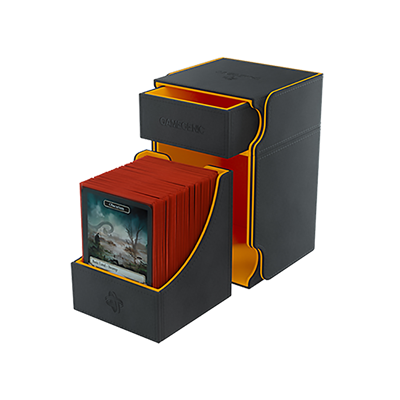 The Stronghold 200+ XL is made to fit 200 double sleeved cards, even when using thick inner sleeves. Featuring elegant outside material in BLACK NEXOFYBER+ with soft ORANGE microfiber lining and two removable card holders keep up to 200 double-sleeved cards, the Stronghold 200+ XL is a large and extremely robust deck box. Just like other Convertible products, its flaps are removable and can be clipped to the back side of the box to save space at the gaming table. Powerful magnets ensure a safe closure.