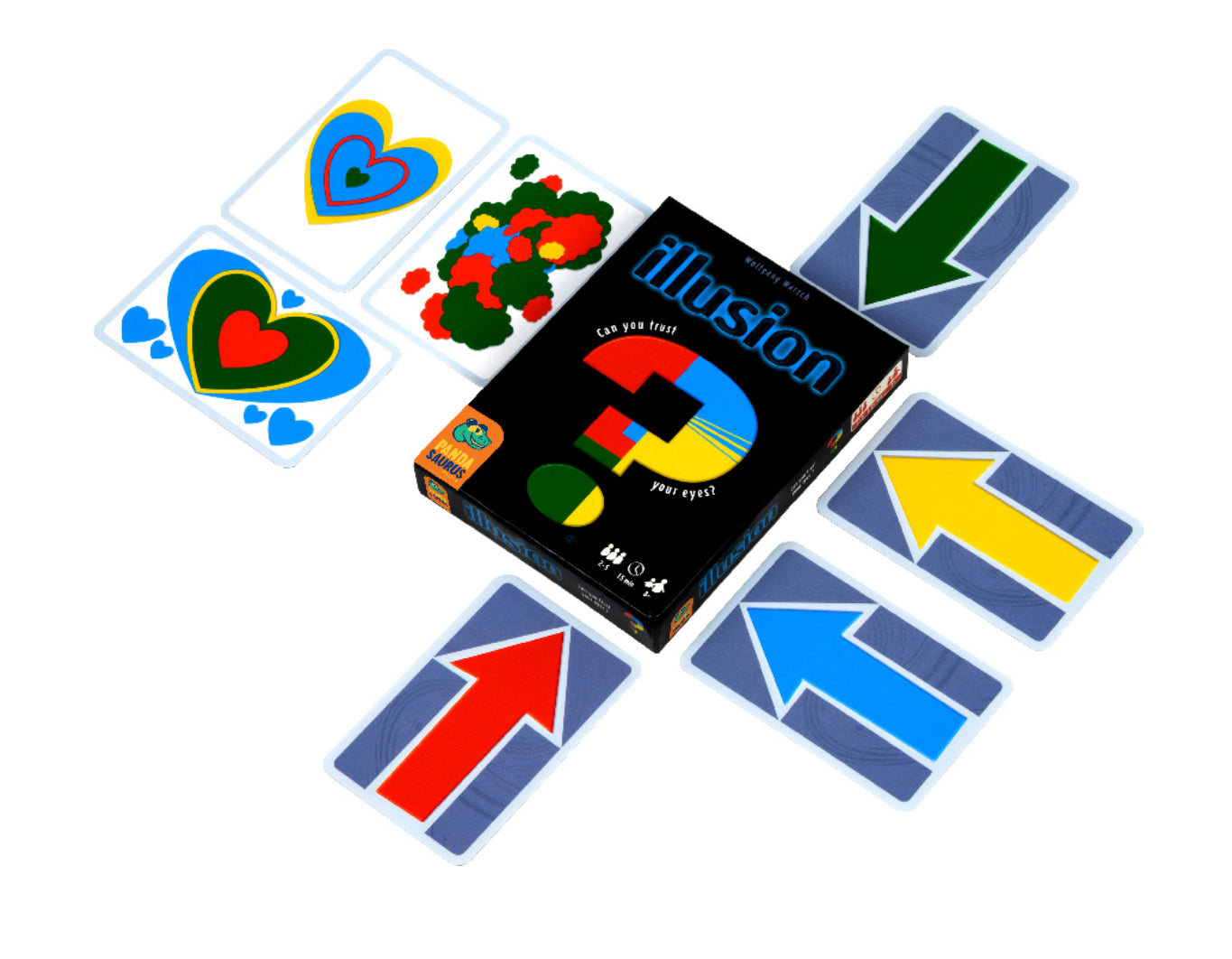 Illusion is a fun light-weight game for 2-5 players from Wolfgang Warsch the designer of The Mind! It's a simple enough game. Players will need to arrange cards in sequential order of how much of a given color is visible on the card. The twist? Each card is a visual-trick designed to mess with your senses.