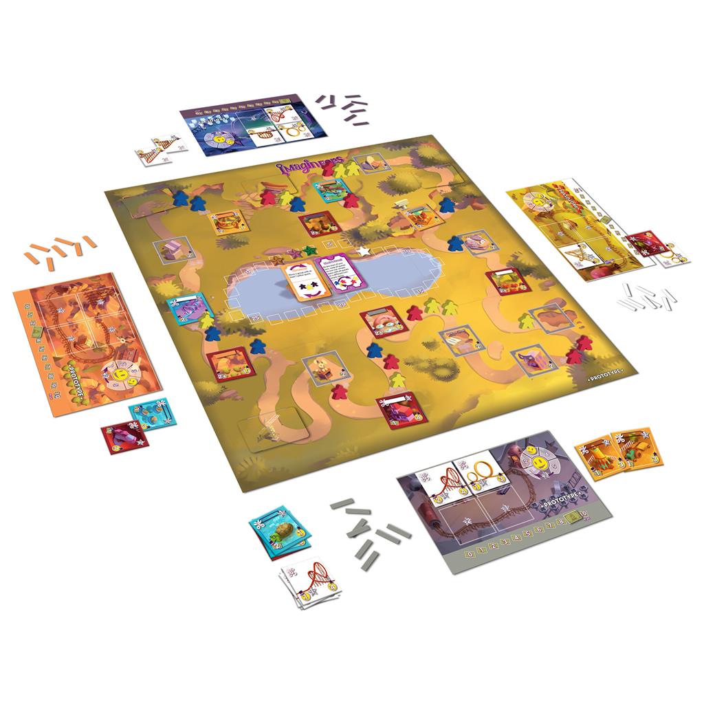 A board game about engineering amusement rides and roller coasters. The most Legendary Imagineer wins.Featuring amazing art, easy to learn rules, and a fun inclusive theme, Imagineers is a gateway game anyone would be proud to own. The game is perfect for playing with your family, friends, or weekly board game group. Imagineers features: tile placement, resource management, and an innovative twist on mancala (one of the most ancient games). All player build up an amazing theme park together, while each player is also trying to make the most thrilling rollercoaster ever!