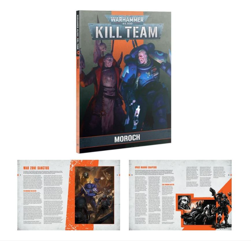 Kill Team: Moroch is the third full expansion box for Warhammer 40,000: Kill Team, the ultimate sci-fi skirmish game. It includes miniatures for two complete new kill teams, the covert Adeptus Astartes Phobos Strike Team, and the heretical traitor guardsmen of the Blooded – as well as transfers, a double-sided game board, a full set of terrain, and a new rule manual featuring missions, background material, and full rosters for both the two Kill Teams and Moroch itself.