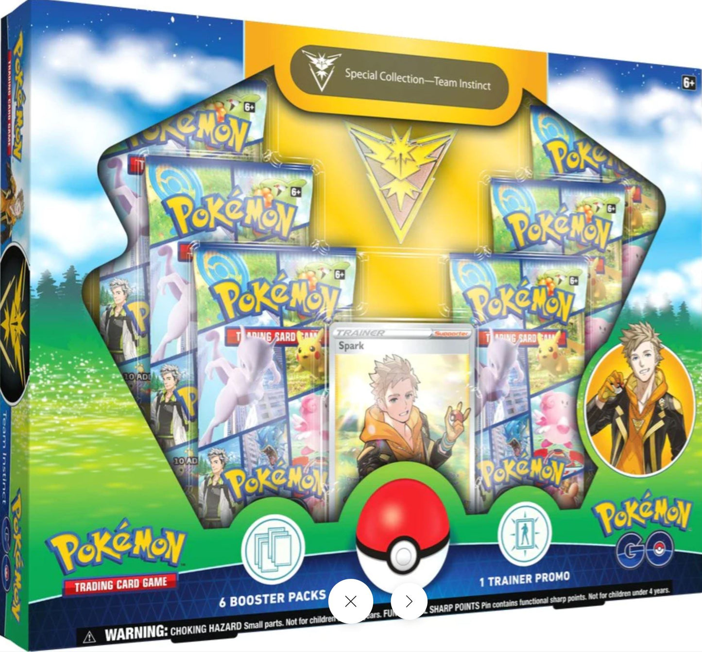 You can proudly show off your favorite team with the eye-catching emblem pin that comes with each collection. Six booster packs from the special Pokémon GO expansion are also included!