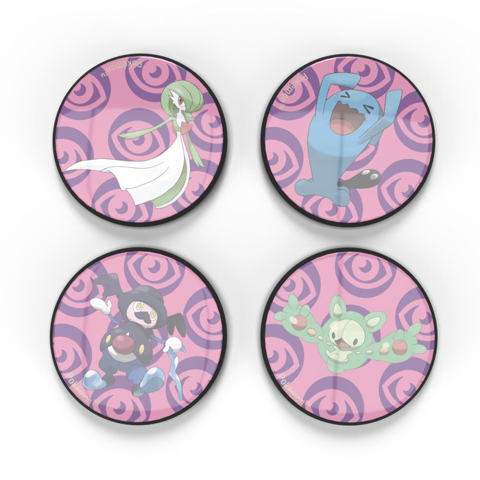 - Comes with four 1.5 in. magnetic badges, featuring Gardevoir, Mr. Rime, Wobbuffet, and Reuniclus