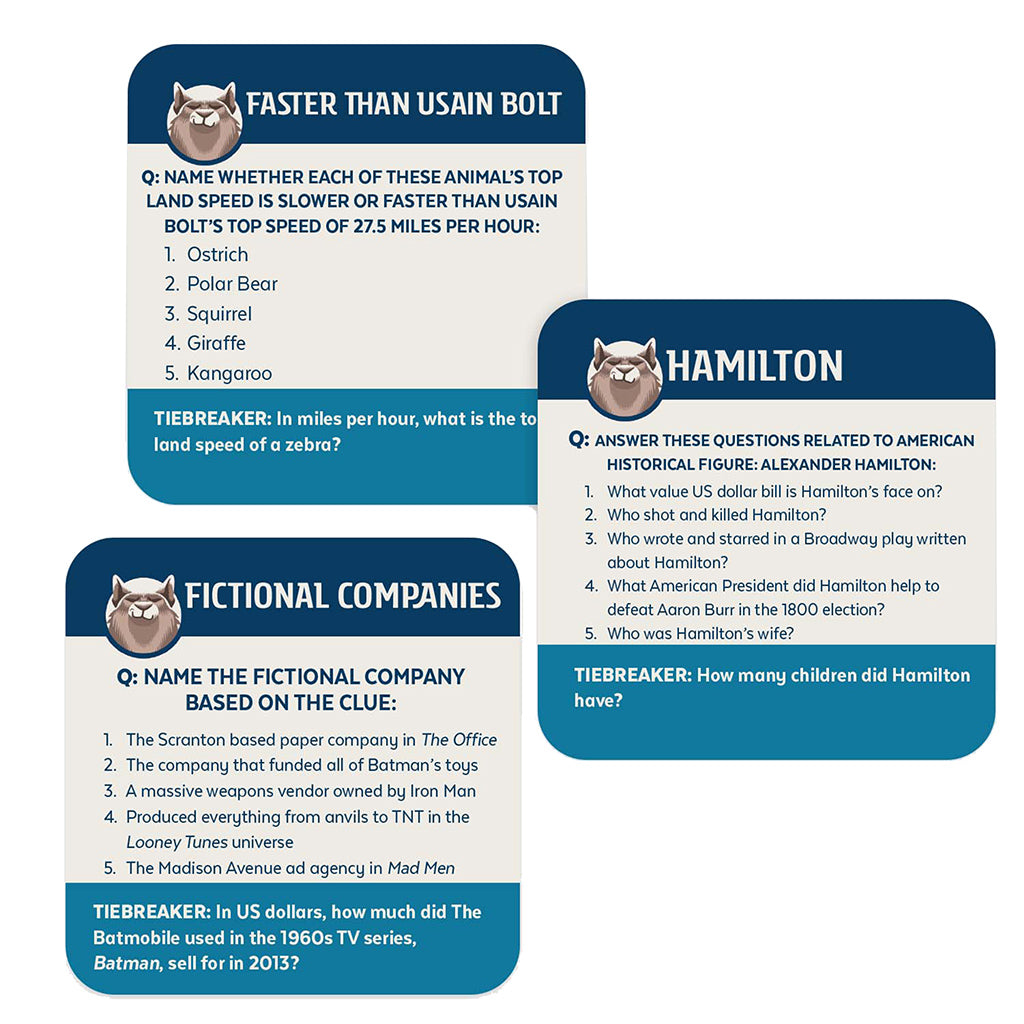 - 125 fun new categories like Hamilton, Alcoholic Country Songs and Faster than Usain Bolt